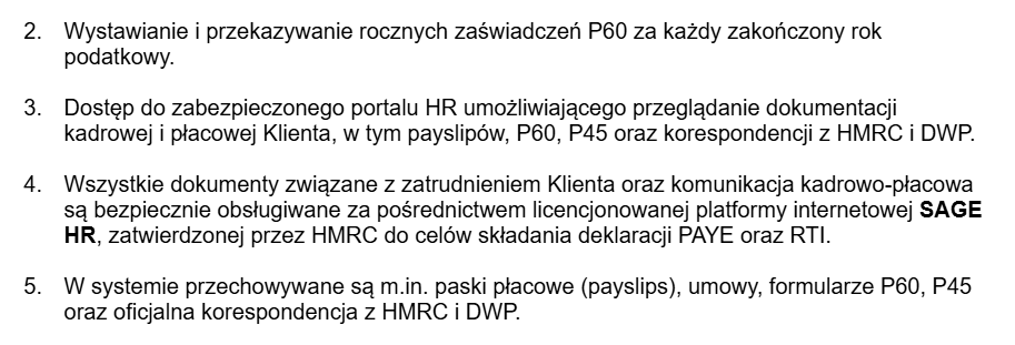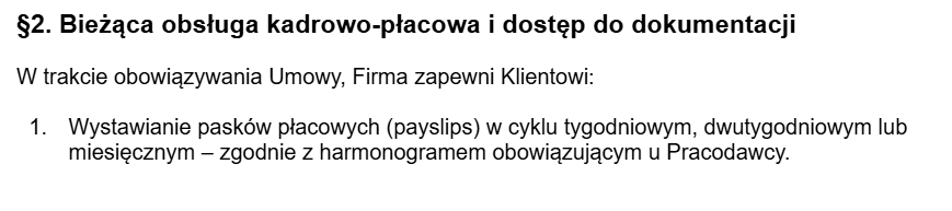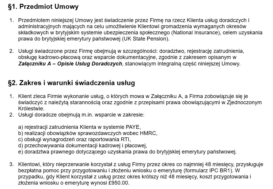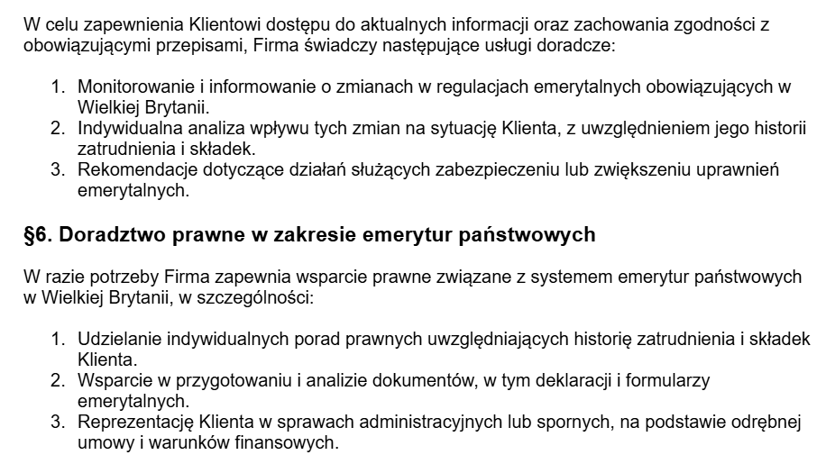 Dostęp do newslettera podatkowo-prawnego, Dostęp do materiałów, szkoleń i wydarzeń rozszerzonych, brak dodatkowych opłat za usługi świadczone przez MAKSIMES LTD zgodnie z zawartą umową o świadczenie usług doradczych – poniżej znajdują się jej najważniejsze zapisy: